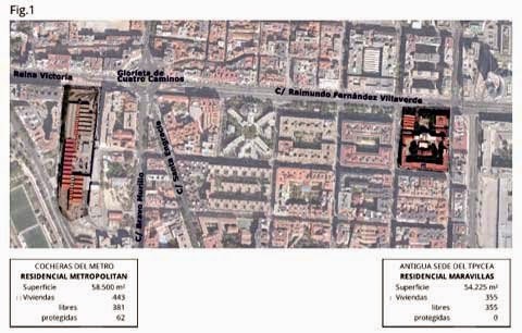 Ambos terrenos han sido adjudicados en subasta púbica a Domo Gestora y al Grupo Ibosa, gestoras de dos cooperativas creadas ad hoc y promocionadas con los nombres comerciales de “Residencial Maravillas”, en Raimundo Fernández Villaverde y “Residencial Metropolitan”, en Cuatro Caminos. (Fig. 1)